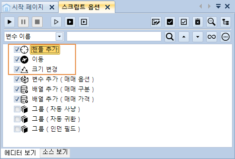 아래 그림과 같이 스크립트에서 "플레이어 표시"를 True로 변경한 항목들이 표시됩니다.