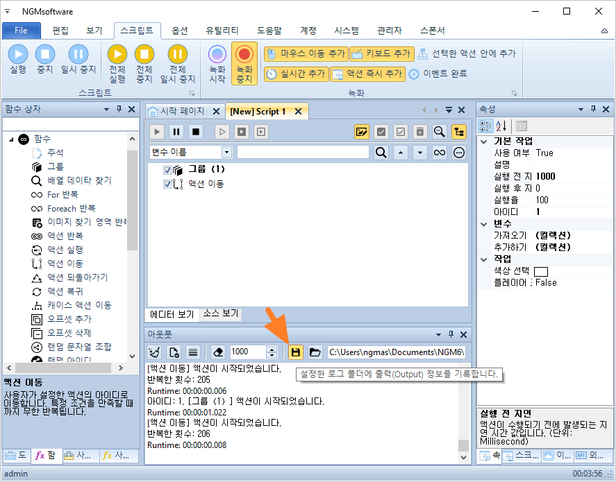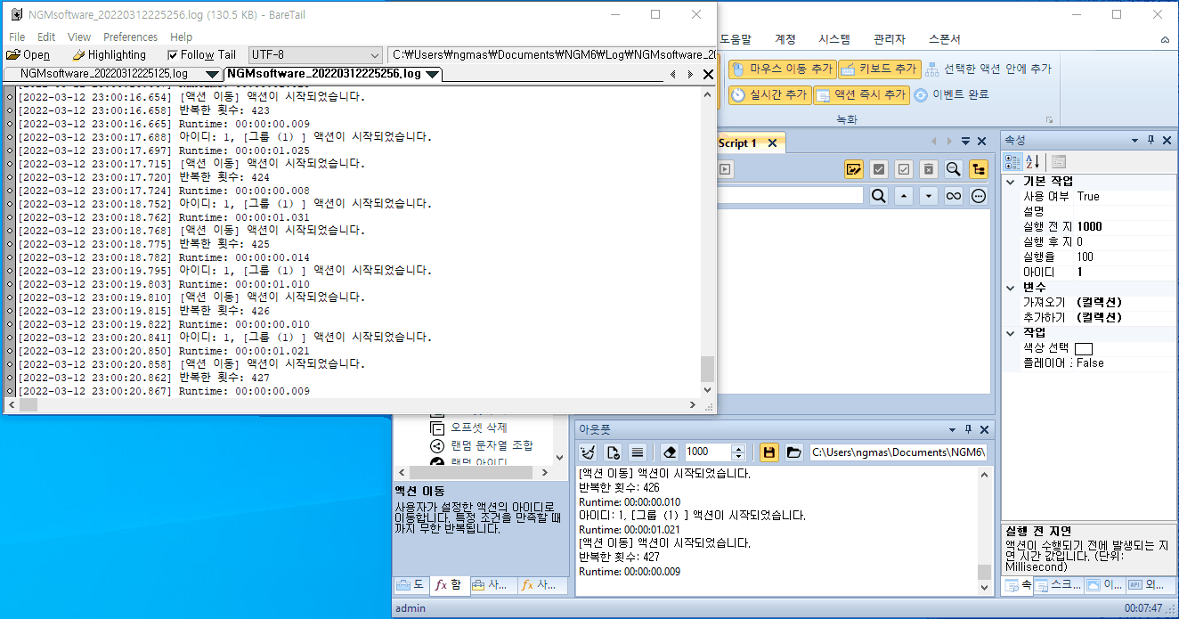사용법은 매우 간단합니다. 엔지엠 에디터 또는 플레이어에서 아웃풋 내용을 파일로 저장하도록 설정 해줍니다. 그러면, 아웃풋 내용을 파일로 계속 씁니다.