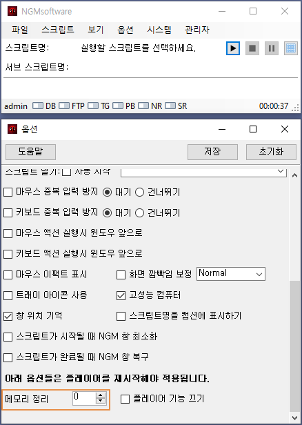 ※ 플레이어 기능 끄기는 매크로와 관련 없는 기능들(버전 표시, 시간 표시, 스크립트 상태 표시등등...)을 수행하지 않거나 느리게 수행합니다.