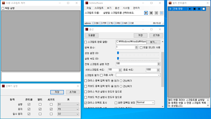 엔지엠 매크로 에디터에 비하면 많이 부족하지만, 비활성 매크로 다클라, 다계정을 쉽게 처리할 수 있는 기능들이 포함되어 있습니다. 이런 기능들은 에디터에는 없는 플레이어만의 고유한 기능입니다. 하지만, 제작한 스크립트를 실행하기 전 설정해야 하는 부분입니다. 스크립트를 실행할 때는 플레이어를 제외한 모든 창을 닫고 사용하시는게 좋습니다.