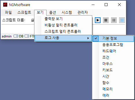 플레이어로 스크립트를 장시간 실행하다가 어떤 문제가 발생하는 경우를 제외하고 플레이어에서 로그를 확인할 필요는 없습니다. 에디터로 제작한 스크립트가 플레이어에서 정상적으로 구동되는지 테스트할 때 확인하면 되는데요. 가능하면 아래 그림과 같이 대부분의 로그는 끄고 사용하시는걸 추천 드립니다. 전부 끄는게 베스트입니다. 참고로, 엔지엠 플레이어와 매크로 엔진이 통신하면서 주고 받는 데이타의 양이 엄청납니다. 로그도 그 일부인데요. 대부분은 메모리에서 즉각 삭제됩니다. 하지만, 로그는 사용자에게 표시하는 텍스트이므로 일정량이 계속 쌓이게 됩니다. 그래서 장시간 매크로를 실행해야 한다면 로그는 전부 끄고 사용하셔야 합니다.