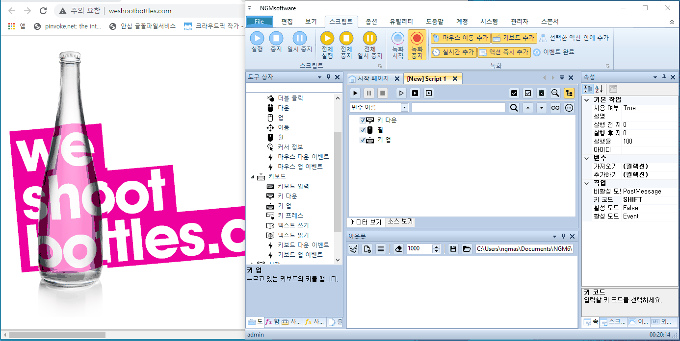안녕하세요. 엔지엠소프트웨어입니다. 대부분 웹페이지나 프로그램 또는 게임에서 세로 스크롤을 사용하고 있습니다. 하지만, 간혹~ 예외적으로 가로 스크롤이 필요한 경우도 생기는데요. 이런 경우 엔지엠 매크로에서 어떻게 입력하는지 알아보도록 하겠습니다. 예제로 사용된 사이트는 [ We shoot Bottles ]입니다. 아래 사이트인데, 하단에 보시면 가로 스크롤이 있습니다.