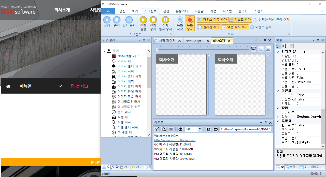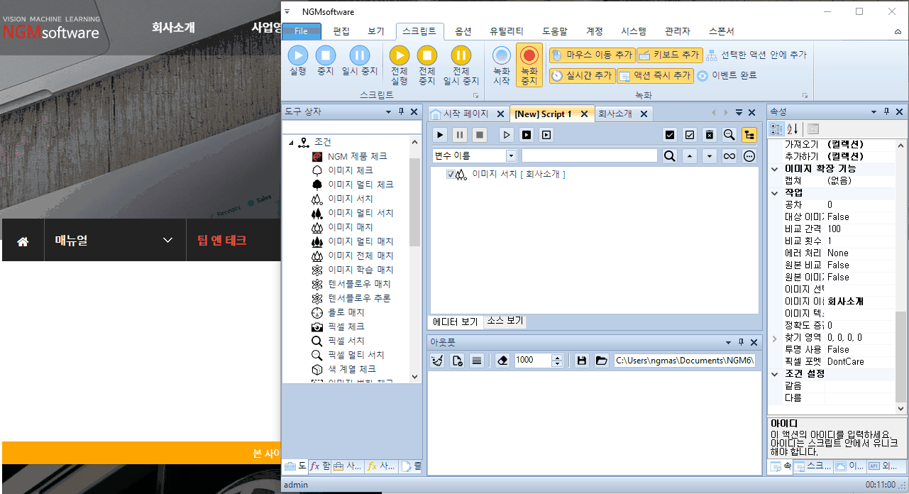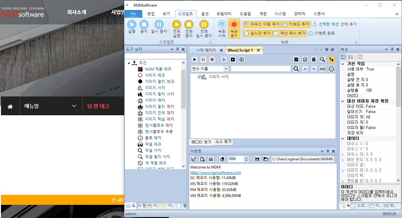이 테스트를 하기 위해 엔지엠 에디터를 실행하고, 새로운 스크립트에 이미지 서치를 하나 추가 해줍니다.