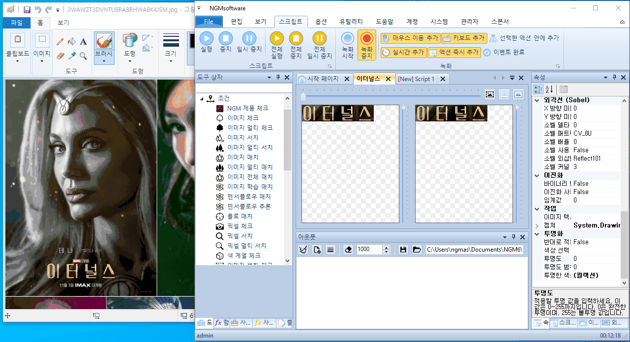 안녕하세요. 엔지엠소프트웨어입니다. 어떤분이 이미지 서치에서 배경을 제거하고 글자만 이미지 서치로 찾을 수 있는지 물어보셨습니다. 그래서, 엔지엠 에디터에서 어떻게하면 반투명 배경에서 원하는 색상값만 남겨놓고 배경을 지우는지 알아보도록 하겠습니다. 이 예제는 뒤에 배경이 변화하는 이미지를 찾을 때 유용하게 사용할 수 있습니다. 참고로, 이미지 체크와 이미지 서치만 가능하며 이미지 매치는 배경을 제외할 수 없습니다. 왜 이미지 매치는 안되는지에 대한 내용은 아래 글을 참고해보세요.