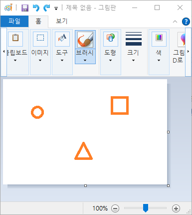 안녕하세요. 엔지엠소프트웨어입니다. 엔지엠 RPA 매크로에는 [ 이미지 서치 ]와 [ 이미지 매치 ]뿐만 아니라 [ 멀티 이미지 서치 ]와 [ 멀티 이미지 매치 ]가 있습니다. 이 조건 액션들은 하나의 이미지를 판단하는게 아닌 여러개의 다른 이미지를 판단해서 어떤 동작을 수행할지 결정할 수 있는 유용한 액션입니다. 테스트를 위해 그림판에 아래와 같은 그림들을 그려줍니다.