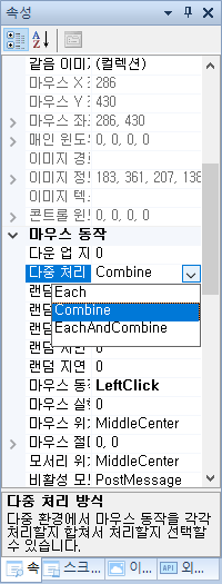이미지 멀티 서치와 이미지 멀티 매치는 등록한 이미지들의 모든 좌표값을 계산해서 가운데를 클릭해줍니다. 위에서 확인했듯이요. 하지만, 각각 개별적으로 마우스를 클릭하고 싶은 경우에는 어떻게 해야 할까요? 마우스 동작에 대한 옵션은 아래와 같습니다.