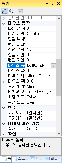 다시 속성창에서 마우스 동작에 LeftClick을 선택하세요.