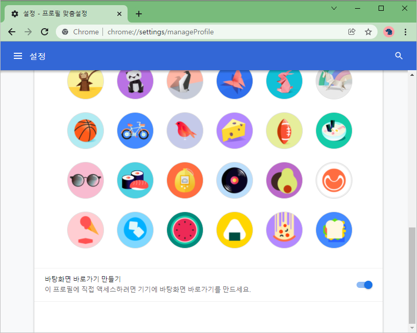새 프로필 만들기 창이 뜨는데요. 로그인 후 자동 로그인을 선택하고, 여러가지 설정들을 마무리하면 이후부터 사용이 가능합니다. 참고로, 쉽게 식별하기 위해 프로필 이름과 아이콘을 다르게 설정하는게 좋습니다. 저는 전부 똑같이 설정해놔서 사용자 데이타 폴더에 들어가서 아이콘을 직접 확인하면서 체크하고 있습니다. 이게 생각보다 은근히 귀찮더라구요^^;