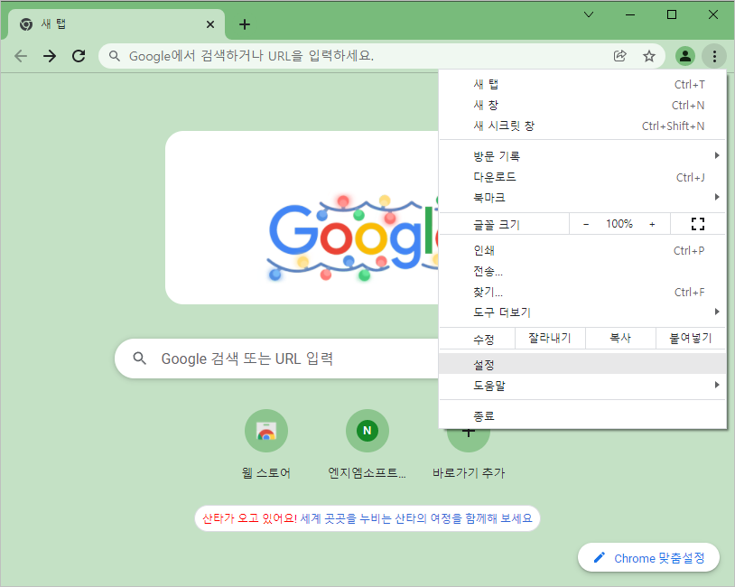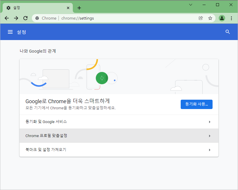 "Chrome 프로필 맞춤설정"을 클릭하세요.