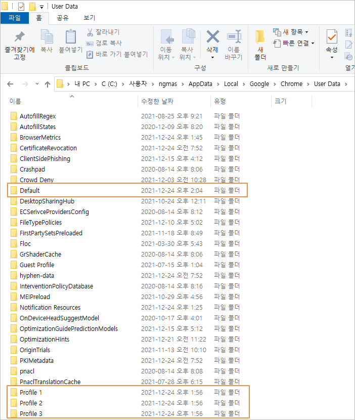 기본적으로 [ 웹 API ]에 대해 알고 있다는 가정하에 설명 드리도록 하겠습니다. 일단 시나리오는 수백개의 계정이 엑셀에 정리되어 있다고 생각하고, 각각의 계정마다 로그인 후 특정 사이트로 이동하여 어떤 동작을 수행하는겁니다. 스크립트는 사용자가 제작하는거라서 필요하면 더 많은 액션을 수행할 수 있습니다. 대부분 웹 업무를 자동화할 때 로그인이 가장 큰 걸림돌이 되곤 합니다. 동일한 작업을 반복하면 자동화 도구 방지 캡챠가 표시됩니다. 캡챠를 우회할수도 있으나 많은 시간과 비용이 발생하므로 미리 사용자 프로필을 만들어 놓고 각각 로딩해서 작업하는게 좋습니다. 아래 폴더에 보면 Default(기본 계정) 외에 Profile 1, Profile 2, Profile 3과 같이 계속 만들 수 있습니다.