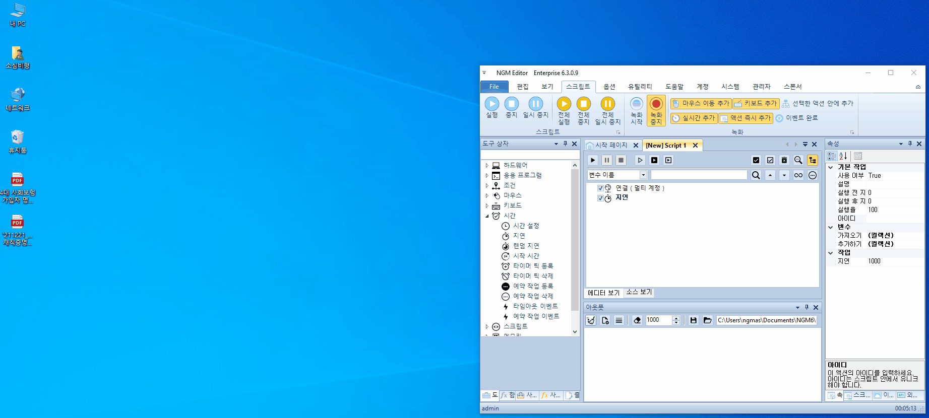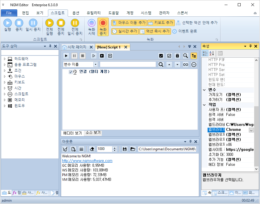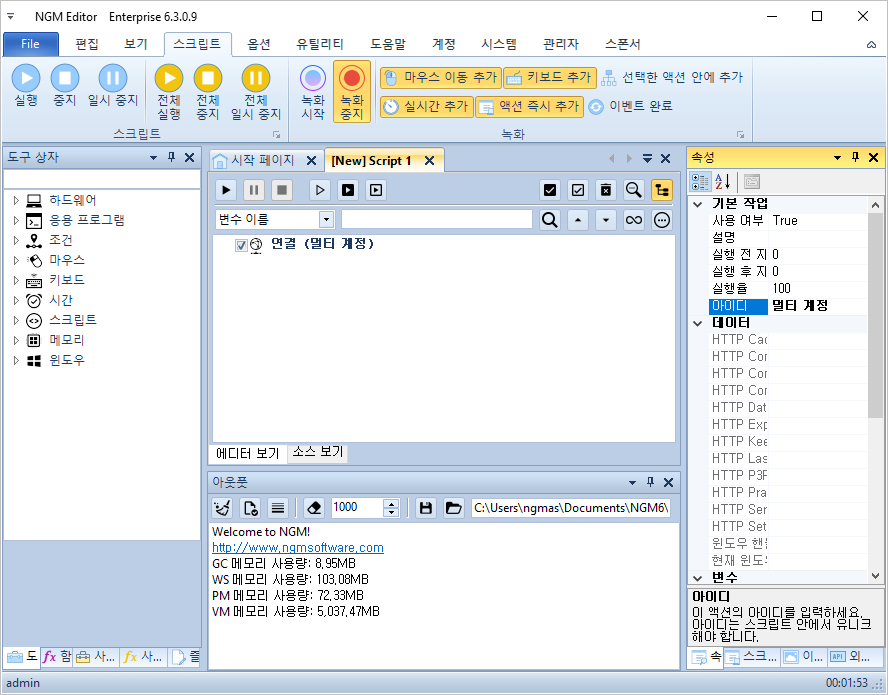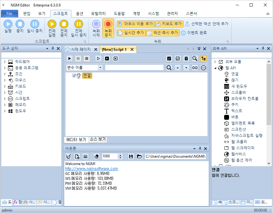 이제 엔지엠 에디터를 실행하고, 새로운 스크립트를 하나 추가하세요.