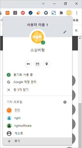 로그인된 크롬이 표시되는걸 알 수 있습니다.