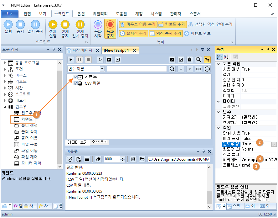 - 도구 상자의 윈도우 > [ 커멘드 ]를 추가해줍니다.