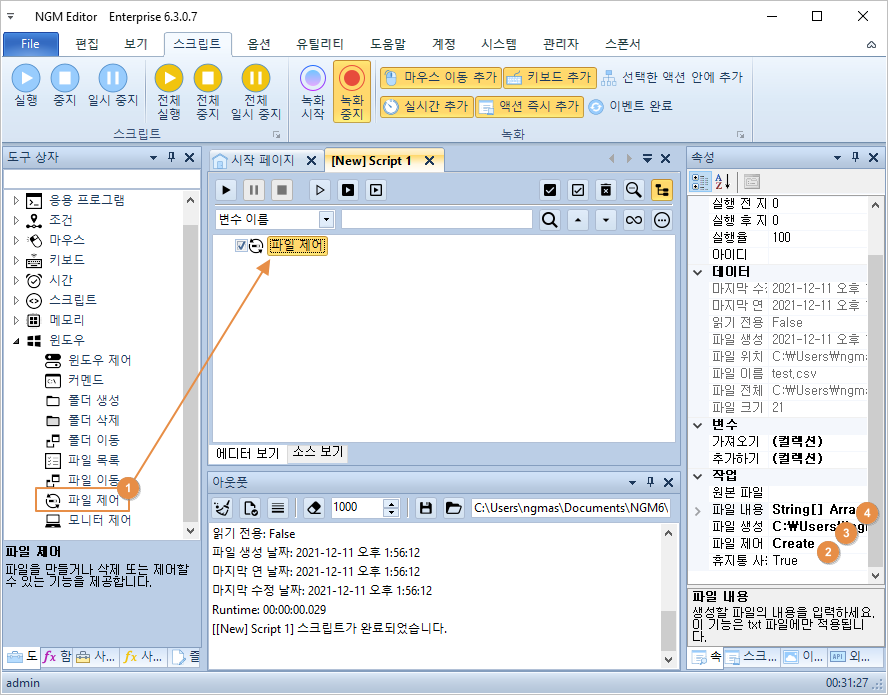 좀 더 간단하게 파일 제어 액션을 이용해도 됩니다. 아래 그림과 같이 파일 제어 액션을 추가하세요.
