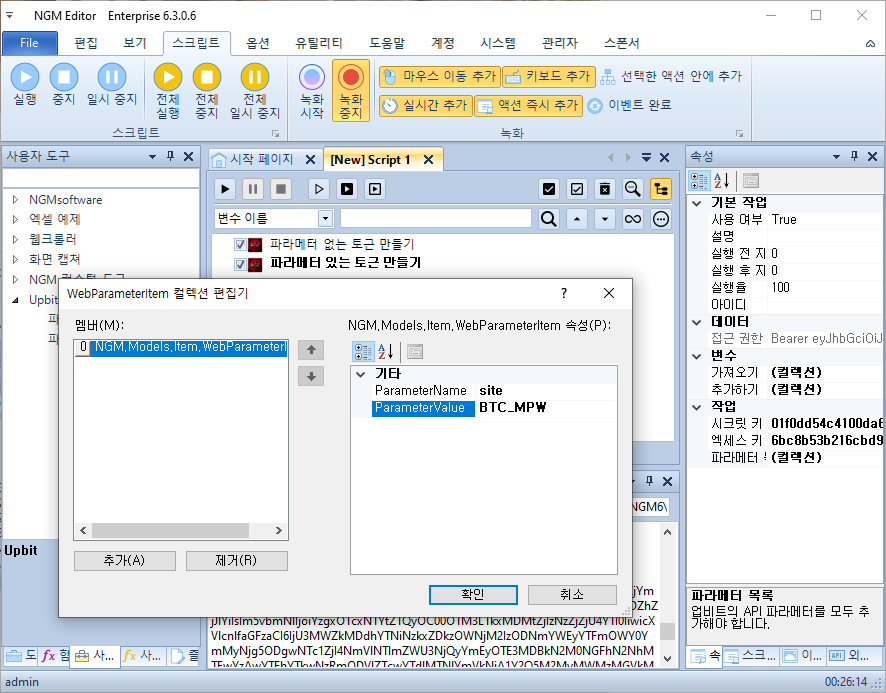 이제 엔지엠 에디터를 실행하세요. 그리고 새로운 스크립트를 추가해줍니다.