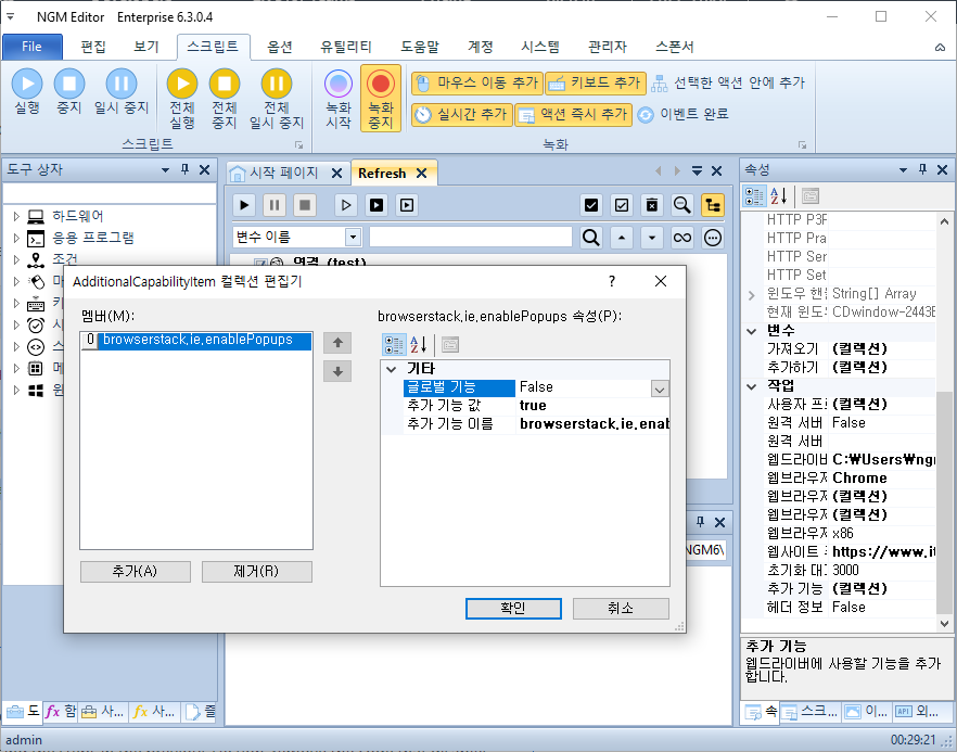 - 추가 기능 이름: browserstack.ie.enablePopups