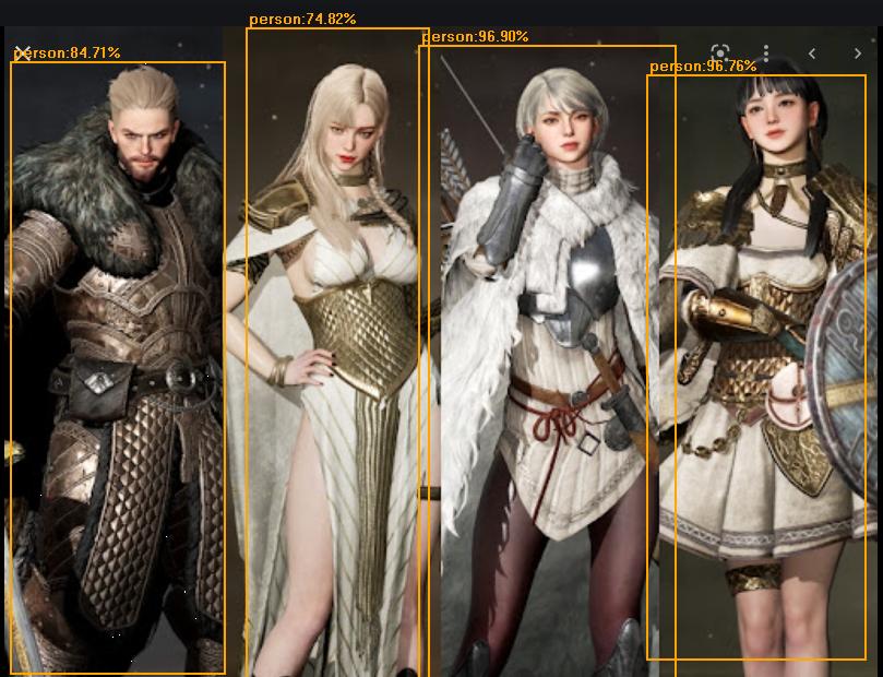 바탕화면에 저장된 결과 이미지를 열어볼까요? 게임 그래픽이지만~ 사람들을 잘 찾아주고 있습니다. 대략 1.72초 정도 걸렸네요.