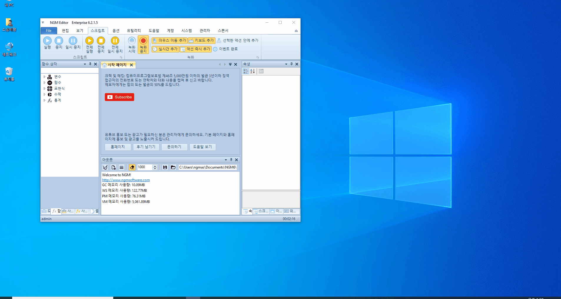 안녕하세요. 엔지엠소프트웨어입니다. 오늘은~ 다른 스크립트의 상태를 체크해서 동작을 제어하는 방법에 대해 알아보겠습니다. 엔지엠 RPA 매크로를 사용중인 고객분께서 질문하셨던 내용인데요. 기본 골격은 고객분이 만드신거고, 구조적으로 에러가 있는 부분만 제가 수정해서 테스트 해봤습니다. 일단, 의도한데로 잘 동작한다고 하니 다행이죠~ 이왕 스크립트를 분석하고 수정해본김에 팁으로 작성해볼께요. 에디터를 실행하고, 첨부되어 있는 스크립트 2개를 열어줍니다.