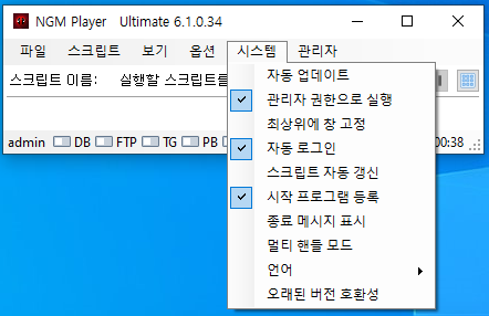 - 시작 프로그램 등록: 윈도우가 리부팅된 후 자동으로 엔지엠 에디터 또는 플레이어를 실행 해줍니다.
