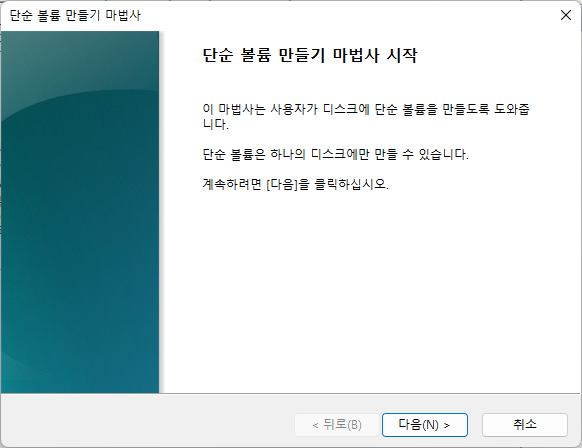 단순 볼륨 만들기 마법사에서 다음을 선택합니다.
