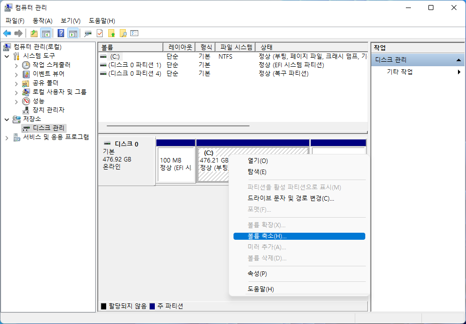 | Windows 11 하드디스크 파티션, 축소 및 확장 (0) | 2022.07.30 |