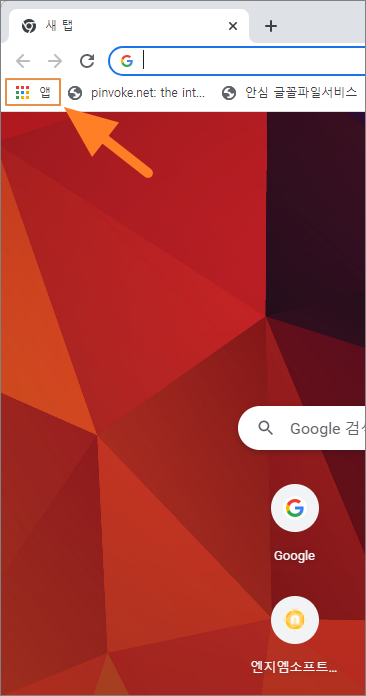 안녕하세요. 엔지엠소프트웨어입니다. 오늘은 크롬 확장 도구를 어떻게 만드는지에 대해 알아보도록 할께요. 요즘은 업무 자동화 RPA 매크로 사이트를 운영하면서~ 매크로 관련된 글이 아닌 개발 관련된 글만 작성하고 있습니다. 엔지엠 에디터에 업무 자동화에 필요한 대부분의 기능이 추가되었기도 하고, 더이상 개선 사항에 대한 요청도 없다보니 개발자가 관심을 가질만한 내용을 찾아서 헤매고 있습니다^^; 구글 크롬 확장이 뭔지는 다들 알고 계시죠? 아래 그림처럼 크롬 브라우저의 "앱"을 클릭 해보세요.