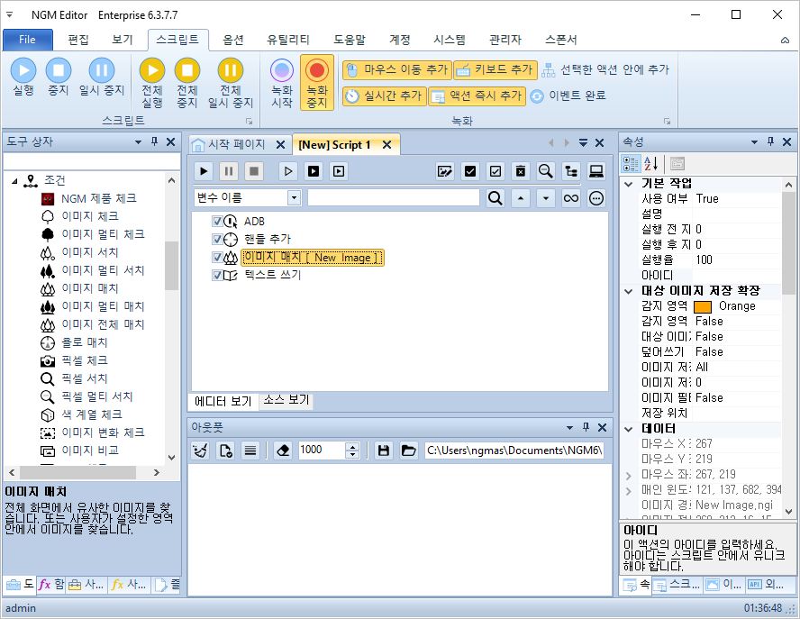 이번에는 조건 액션들이 이미지를 인식하고, 어떻게 클릭이 되는지 알아보도록 하겠습니다. [ 이미지 매치 ] 액션을 추가하고,