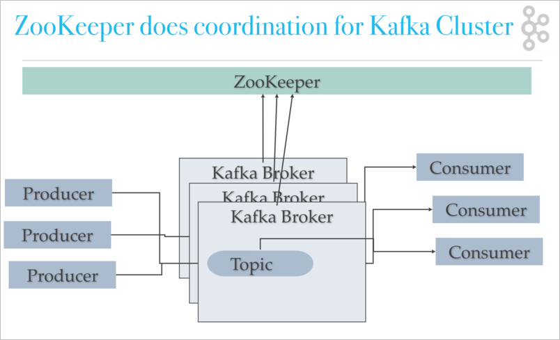 위 그림에서 알 수 있듯이 주키퍼(Zookeeper)와 카프카 브로커(Kafka Broker), 프로듀서(Producer), 컨슈머(Consumer)가 필요합니다. 첫번째로 카프카 브로커는 카프카 클러스터안에 여러개가 포함됩니다. 그리고 카프카 클러스터는 주키퍼 클러스터에 여러개가 포함됩니다. 그래서, 카프카 클러스터에 메세지를 저장하는 브로커가 여러개 있다고 생각하시면 됩니다. 브로커의 역할은 메세지들을 나눠서 저장하고, 이중화 및 장애에 대한 대처도 처리합니다. 이런 브로커들이 모여있는 카프카 클러스터를 관리하는 주키퍼 클러스터가 필요합니다. 주키퍼 클러스터가 모이면 주키퍼 앙상블(Ensemble)이라고 부릅니다. 주키퍼에 대한 설명이 아니므로 이 부분은 나중에 따로 알아보기로 하구요. 우선, 이정도로만 알고 넘어갑시다.