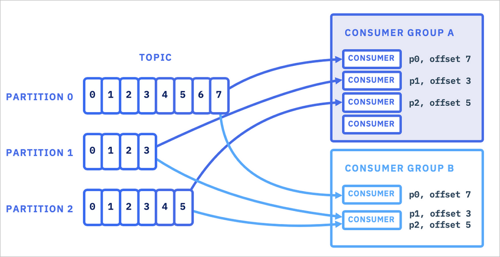 하나의 파티션이 하나의 컨슈머 그룹에만 연결할 수 있기 때문에 컨슈머 그룹안에서는 하나의 메세지가 순서대로 처리되는것을 보장할 수 있게됩니다. 한개의 파티션이 한개의 컨슈머만 연결할 수 있다는 제약은 컨슈머 그룹안에서만 적용되기 때문에 위 그림과 같이 한개의 파티션이 여러개의 그룹에 공유될 수 있습니다. 이 부분이 처음에 이해하기가 어려울 수 있습니다. 서비스를 개발할 때 잘 고려해야 하는 사항이기 때문에 꼭~ 이해하고 넘어가야 합니다. 우선, 카프카 테스트에 대한 내용을 읽어보시면 여기까지의 내용이 어느정도 이해가 갈수도 있습니다.