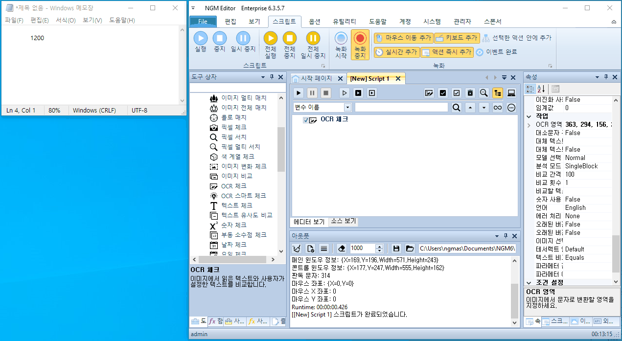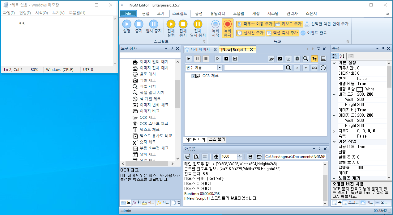 [ OCR 체크 ] 액션을 스크립트에 추가 해줍니다.