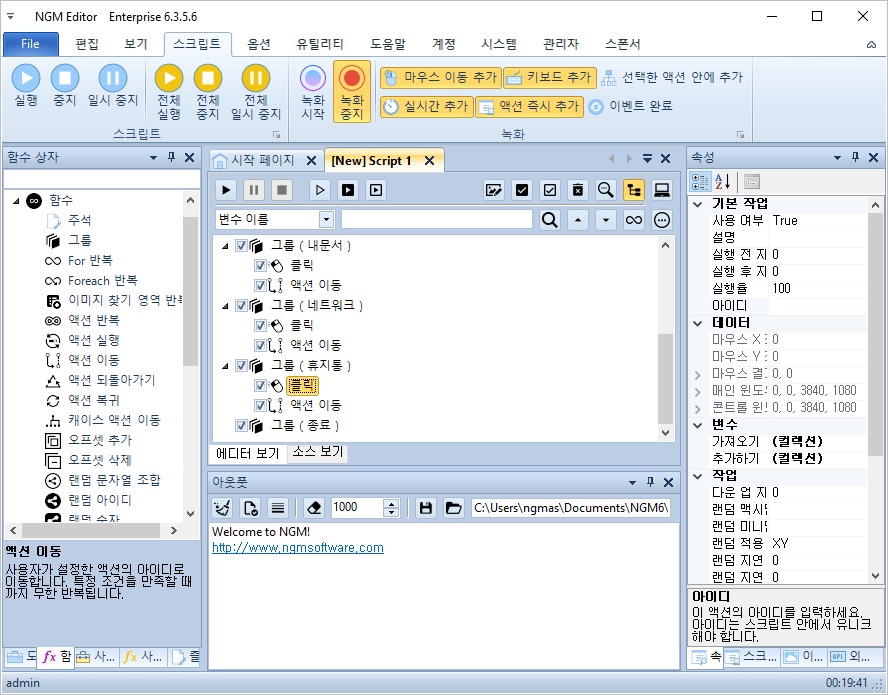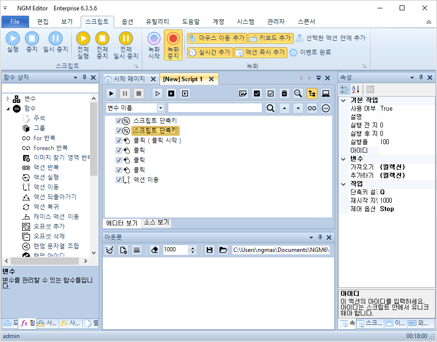 안녕하세요. 엔지엠소프트웨어입니다. 오늘은 사용자가 설정한 키를 누르면 매크로가 실행되게 하는 방법에 대해 알아보도록 하겠습니다. 그리고, 좀 더 고난이도의 로직을 적용시켜볼건데요. 여러개의 키로 구간별로 실행하는 방법도 알아볼께요. 하나의 스크립트에서 키보드 조작에 따라 동작을 분기하는 방법입니다. 아마도~ 대부분의 분들이 이 내용만으로 이게 뭐지하고 생각하실겁니다. 아래 예제를 한번 따라 해보시면 쉽게 이해할 수 있을겁니다.