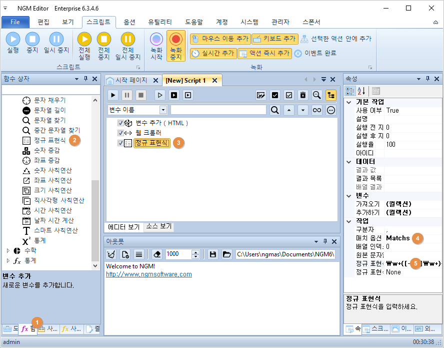 - 표현식 카테고리의 정규 표현식 액션 선택