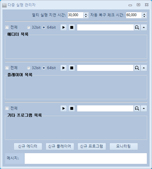 멀티 매니저(다중 실행 관리자)는 에디터와 플레이어를 멀티로 실행하는 기능외에도 다양한 기능들이 포함되어 있습니다. 좀 더 자세한 내용은 아래 링크에서 확인할 수 있습니다.