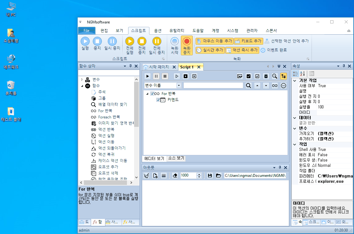 안녕하세요. 엔지엠소프트웨어입니다. 윈도우 폴더를 여는 여러가지 방법에 대해 알아보도록 하겠습니다. 가장 일반적인 방법은 폴더를 더블 클릭하는 방법이겠죠? 아래 동영상을 참고해서 엔지엠 에디터를 실행하고, 새로운 스크립트를 추가 하세요.
